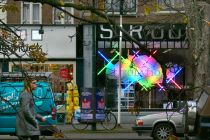 Een presentatie in de etalage van de bibliotheek naar aanleiding van het verschijnen van het boek 'ETIOLATION I' van beeldend kunstenaar Navid Nuur (met een lichtwerk van Willem Marijs).