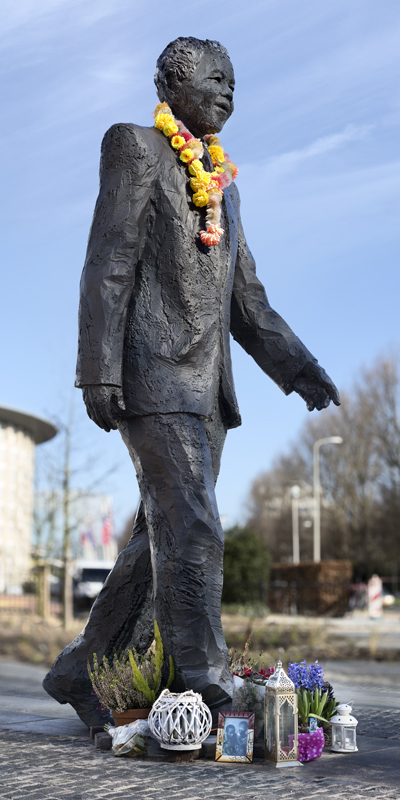 The Mandela Monument Long Walk to Freedom by the Dutch sculptor Arie Schippers is standing at the President Kennedylaan in The Hague near Omniversum.On 25 September 2012 Archbishop Desmond Tutu inaugurated this 3,5 meter tall statue. Stroom Den Haag advised in the selection of the artist and acted as a supervisor up and until the sketch phase.