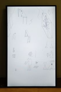 On the 3rd of September 2014 Bernice Nauta made a drawing of her artist studio. It was not a literal representation of the space, but more a way of mapping the images and motifs that mattered to her at that point in time: a figure, a globe, an elixir of life potion bottle, a book, a light cone, a skull in formaldehyde, a mask in a bottle, a heart, pencils, lungs, a rib cage, paintings, a table, tubes, chemistry glassware, trestle table supports, a cupboard containing a suspended drawing and a snake. The drawing functioned as a map of her fascinations and mindset.