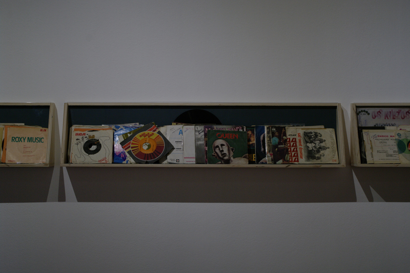 In the presentation space of Ondertussen, The Hague based artist Ana Guedes shows elements of Untitled Records, a work in progress that interweaves historical and personal narratives based on a record collection of a Portuguese family. The expanding collection travelled over three continents and is in that sense a historical reflection of the migration route the family. The first records were purchased in Angola in the 1960s and were shipped home after war broke out in this former Portuguese colony 40 years ago. Other vinyls were subsequently purchased in Portugal and Canada up to the early 80s.