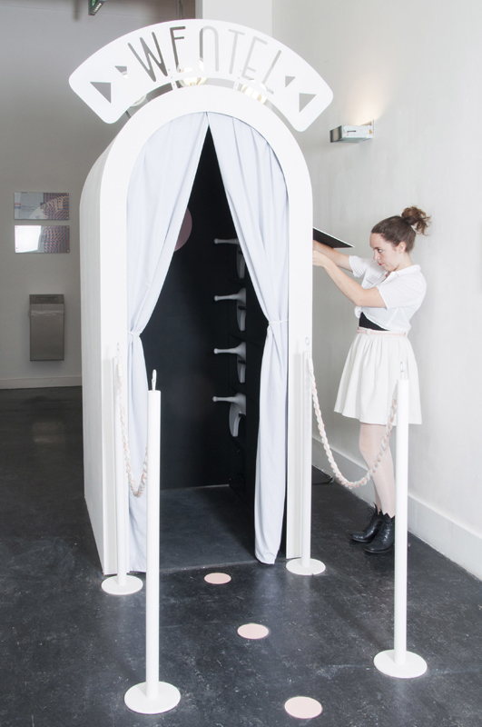 Volmers doorlopende project 'WENTEL' is een reis die de wereld om ons heen letterlijk op zijn kop zet. Met een ogenschijnlijk simpel instrument nodigt Volmer deelnemers uit om over het plafond te wandelen.