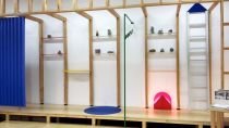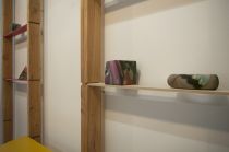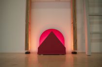 entreeruimte van Stroom Den Haag. Het wandmeubel dient als podium en