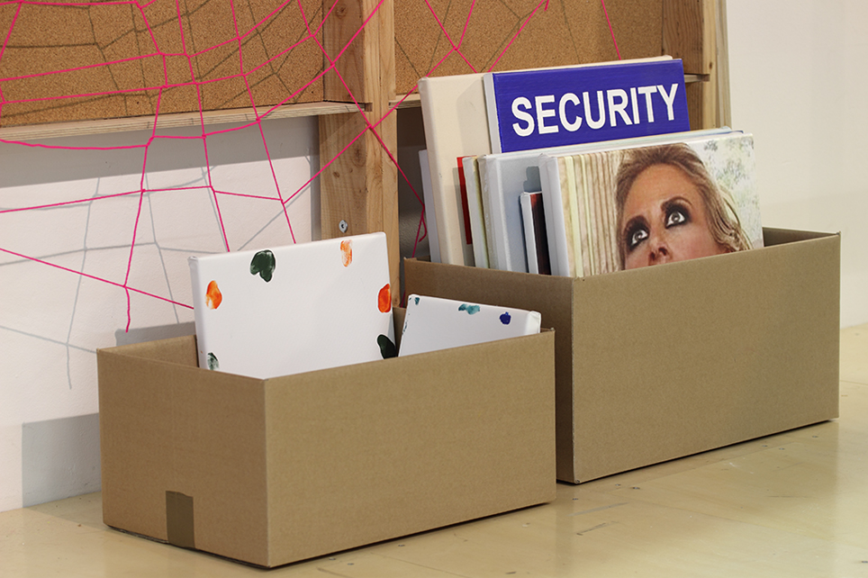 After my last show was taken down, works were stored and packed ready for transport to my studio. A lot of the smaller paintings were put into cardboard boxes and once they arrived at my studio they were put down on the floor in a ‘semi organised' collective fashion. After about a week, I thought I should properly store them away, but I didn't. They suggested a whole new other form, that of the ‘flea market'. Traditionally, artworks are not allowed to be touched let alone handled in museums and I'm sure everybody has at some point secretly touched a painting or sculpture. At Stroom people will be able to do exactly this. One of my fondest memories was when I was a teenager and had a weekly habit of frequenting independent record shops, the kind that made you feel like you were discovering new bands that the mainstream would never touch. Flicking through boxes of albums, e.ps and 7" singles was always very exciting for me. Before I knew that one could be an artist, I wanted to be a record cover designer. The ‘market structure' work in some ways represents the kind of artist I am, a single author with multiple authors inside him.