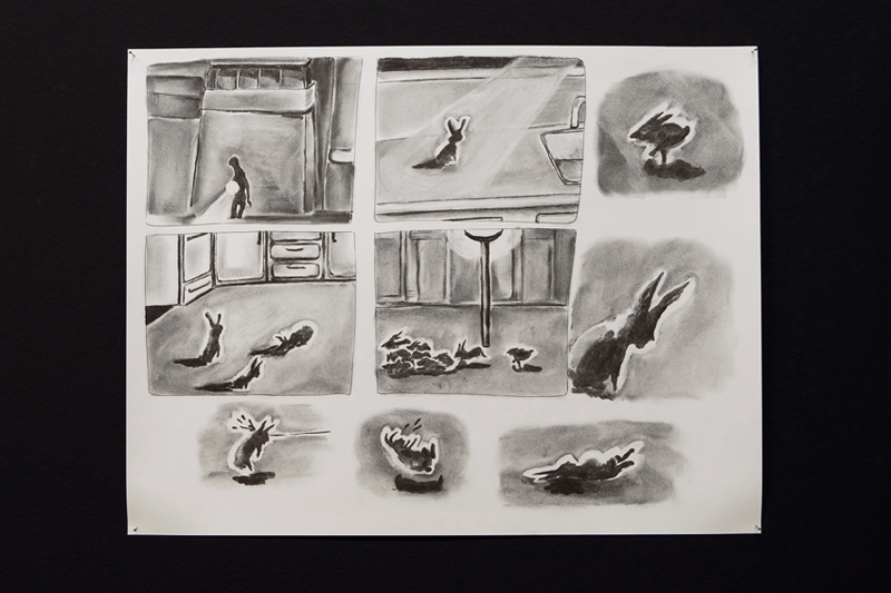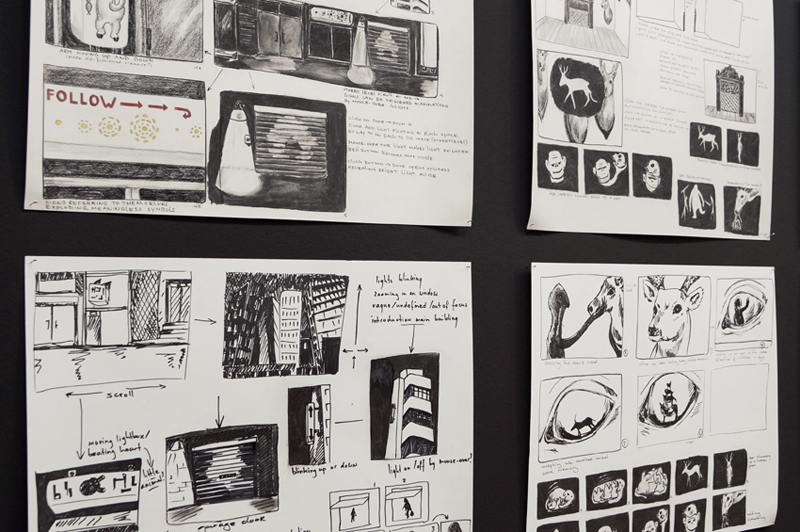 De Haagse kunstenaar Manon Bovenkerk toont in Ondertussen haar nieuwe (en nog niet voltooide) project Monster, een interactieve en webgebaseerde vertelling op basis van tekeningen en animatie. Het gaat over een figuur die het midden houdt tussen huisdier, dienaar en spook. Het personage beschouwt zichzelf als menselijk; desondanks kan hij zijn monsterlijke natuur niet ontkennen en ervaart een tegenstrijdige identiteit. In iedere episode probeert het monster te passen in een bepaalde (menselijke) rol, maar telkens faalt hij. In de slotscene ontdekt het figuurtje dat er anderen zijn zoals hij. En hoewel dit niet alle problemen oplost is het een openbaring voor hem en de kijker.