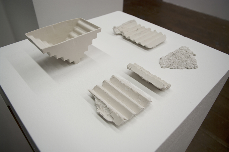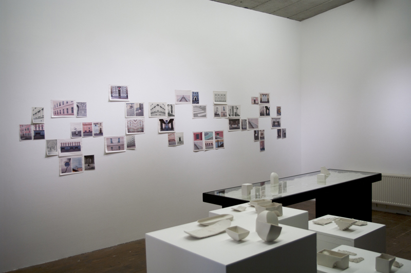 The resulting profile has served as a guideline for ceramic research. This second representation of the city uses imagery as a visually defining element. The objects are abstract representations of architectural elements. During her stay in Vienna Kranenborg developed a production method that enables the materials to serve as moulds for one another. This results in twin objects, one made of plaster, one made of porcelain.