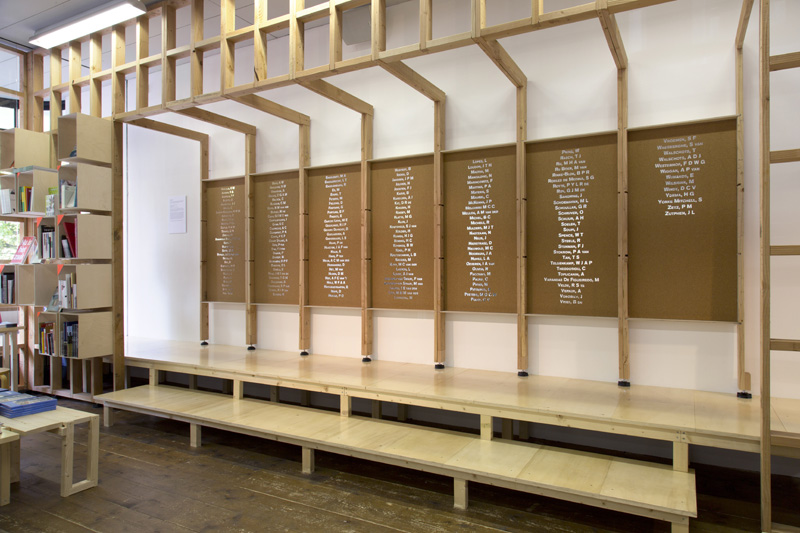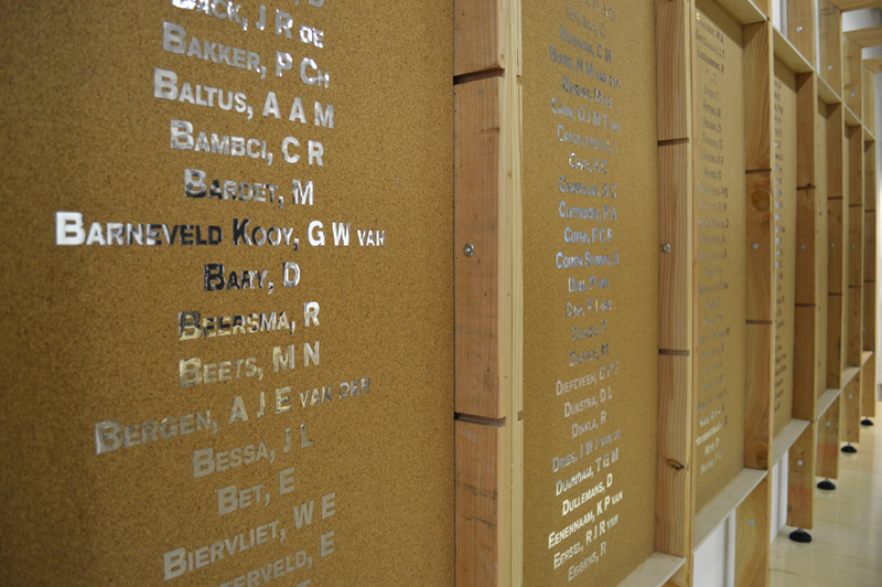 Impersonate is a presentation of a site-specific project by Kosta Tonev. Over a period of several weeks the artist has gathered an extensive database containing the names of everyone residing within a 100m radius from Stroom Den Haag. Either by a deliberate intervention or by accident, one of the names is omitted from the list. The rest of them are placed in the entrance space of Stroom Den Haag, and made accessible to the visitors.