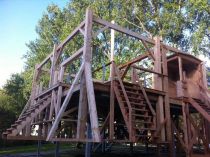 Scaffold, a sculpture by the American artist Sam Durant, was one of the major attractions of dOCUMENTA (13) in Kassel Germany last year. Like an oversized children's jungle gym it stood on the intersection of the symmetrical lanes of the baroque Karlsaue Park. People who climbed the steep staircases had a magnificent view of the surrounding area and also noticed that the floor was made up of different levels. Scaffold is a combination of reconstructed wooden gallows (or scaffolds as they were once called) that were used in executions of significance throughout U.S. history, from abolitionist John Brown in 1859 to Saddam Hussein in 2006.