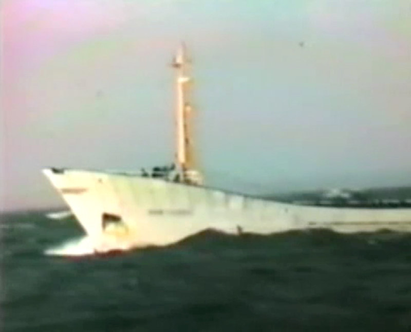 troebele video van de zee, gemaakt door een schipper en daarvoor op een