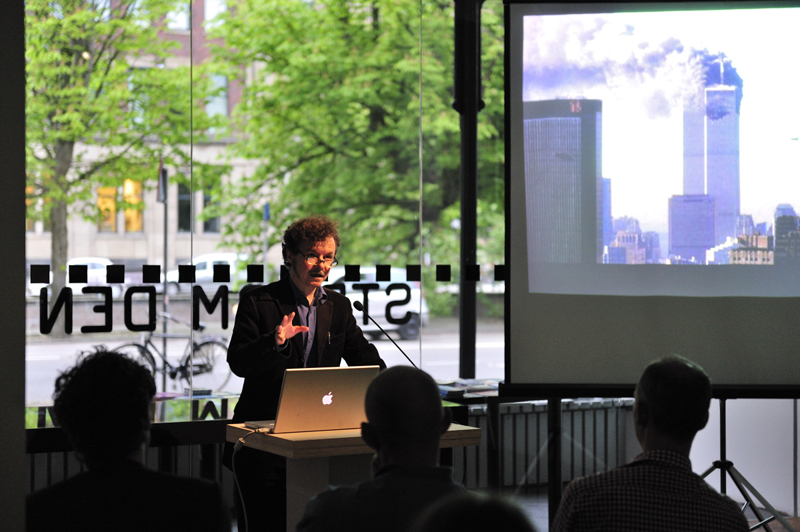 De verschijning van Florian Göttke's 'Toppled' was aanleiding om de gerenommeerde Zwitserse kunsthistoricus, auteur en curator Dario Gamboni uit te nodigen. Deze zal een lezing geven over het ‘asymmetrisch conflict', een term die sinds de moedwillige verwoesting van het World Trade Center op 11 september 2001 in zwang is geraakt. Hiermee wordt verwezen naar een situatie waarbij twee partijen qua macht, legitimiteit, middelen en organisatie volledig tegenover elkaar staan. Bestaat er een verband tussen de mate van asymmetrie in een conflictsituatie en de neiging van de ‘zwakkere' partij om zijn toevlucht te nemen tot iconoclasme?