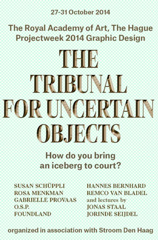 Tussen 27 en 31 oktober 2014 organiseert de afdeling Grafische Vormgeving van de Koninklijke Academie voor Beeldende Kunsten Den Haag (KABK) de jaarlijkse projectweek. De editie draagt deze keer de titel: The Tribunal For Uncertain Objects (How do you bring