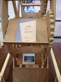 Serendipitous Circuit, a project initiated by the artist Léa Lagasse, brings together a series of exhibitions of printed matter presented on a library wheel. Léa Lagasse has reconstructed a wheel following the same construction principle first imagined by Agostino Ramelli in the 16th century. The key element to the mechanism of the wheel is a cogged system which maintains numerous shelves at a constant angle while its user rotates the instrument and wanders from one book to the other. As this apparatus intends for its operator to read several books at once, the collision between the writings from different sources triggers digressive thinking, fortuitous combinations, and frictions between the texts.