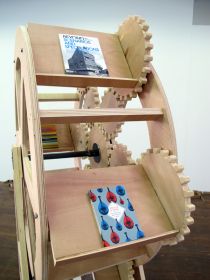 A selection of artists, curators and writers have been invited to reflect on the type of reading activity allowed by this atypical device. Each of them has selected six titles to be displayed on the wheel shelves, for a week.