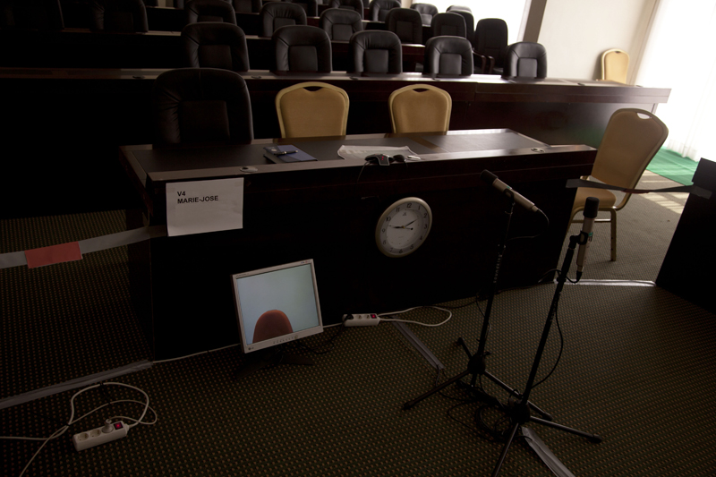 On Saturday 15 February 2014 (14-17 hrs) there will be a live teleconferencing event at Stroom Den Haag with legal experts, technicians, journalists and others in various countries. The discussion will focus on the concept of universal jurisdiction, often presented as a 'juridical utopia'. What does it mean to be represented in pixels during a trial? Is there a mininum level of resolution for adequate representation? And how does the 5-second delay in audio influence the capacity to speak, and to be heard?