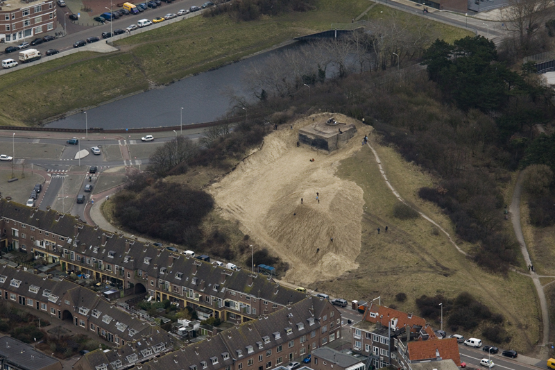 This is an area already undergoing drastic transformation as the existing communities and industries are displaced to make way for new housing developments. Gaillard's project comments obliquely on this process of gentrification and the way in which outmoded architecture is buried or hidden beneath new layers of urban development. This work, titled ‘Dunepark' - a rough translation of its location - can be seen as the embodiment of the ‘Bunker Archeology' carried out by the French cultural theorist Paul Virilio in his eponymous 1975 book and exhibition. For Gaillard, the physical process of excavating is a form of negative sculpting. He sees this submerged bunker as a buried readymade. With the help of large earth-moving equipment and volunteers of the Stichting Atlantikwall Museum Scheveningen, Gaillard will dig out this massive form to reveal it in all its brutalist glory, before recovering it once more.* The bunker itself is not open to the public.