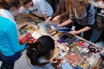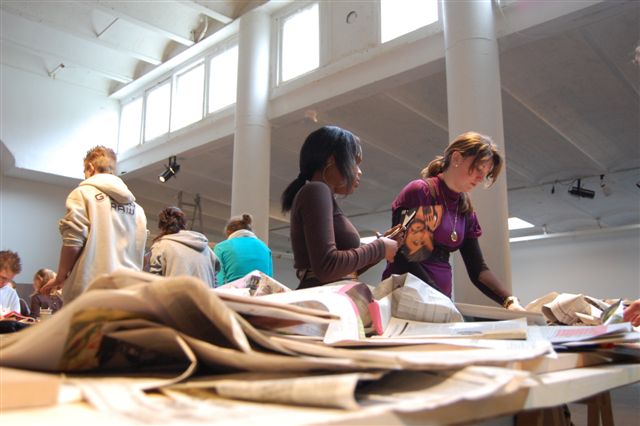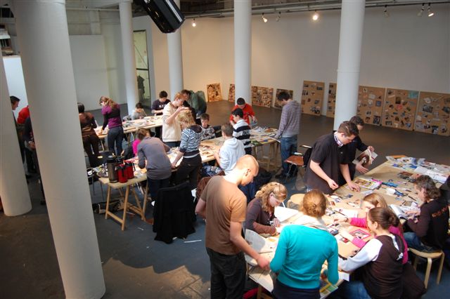 Verdeeld over groepjes worden collages gemaakt van beeld en