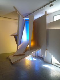 André Kruysen's sculpture encompasses many contradictions. The sacred effect of light stands in sharp contrast to the fast-moving image culture we inhabit and which is a ubiquitous presence in every area of our lives. Kruysen is inspired by the chaos that surrounds us, but seeks to distil a meditative experience from it. However, his work also betrays a degree of anarchy. His sculptures are reminiscent of haphazard heaps of kerbside waste and other informal structures. Or indeed of the stacked planes of Russian Constructivism, or the buildings of architects like Daniel Libeskind. At the same time, they are the result of a detailed investigation of the interactions between space, light and material, brought together to form huge floating architectural compositions.
