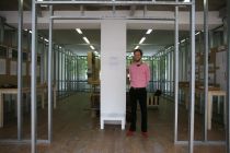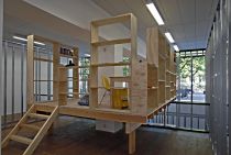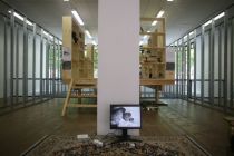 toont elementen die ook in de tentoonstelling terugkeren: een podium,