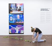 The exhibition also features new works by Jason File, who is both an artist and a prosecutor at the International Criminal Tribunal for the former Yugoslavia. In a number of his works he explores alternative modes of understanding evidentiary material used at the Tribunal, sometimes incorporating it directly into the work. "There is so much more potential for the material used, than just evidence", he says.