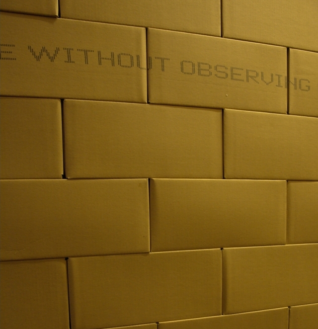 Black absorbs all color, but where does it go? / The floor mirrors our private pressure. / Light is full of long knives that slowly scratches the floor, I just can't hear it. / Try to realize the inception of tomorrow's new and mint condition. / Some parts of the city overflow due to the fall of the night outside. / Please recolour my direction. / What I had lost in my studio was found by my studio. / Awareness is the ability of an entity to flow (more) meaningful. / I am never here, only there.