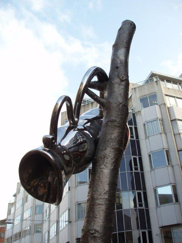 Opgehangen in bomen, op rekken geplaatst of zo op de grond neergezet zijn haar sculpturen aantrekkelijk en gemakkelijk toegankelijk. Een vleugje humor en een beetje erotiek doen de rest.