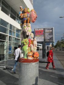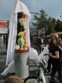 's Avonds na sluitingstijd als de winkels dicht zijn en de straten uitgestorven, komt het centrum van Den Haag opnieuw tot leven. Dan zijn de warenhuizen, het stadhuis en de straten even het terrein van de Binnenstadgoden: Deatombax (god van het transport), Kobrak (god van de dieren) en collega's dwalen samen rond. Zo gaat althans het verhaal van beeldend kunstenaar Ingrid Mol (1970). Zij nodigde kinderen van groep zeven van zes basisscholen uit het centrum van Den Haag uit om één standbeeld te maken voor alle Binnenstadgoden.