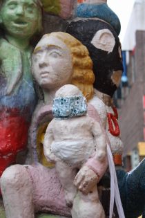 Ingrid Mol geniet bekendheid met haar grote, kleurrijke en fantasievolle personages van keramiek. In 2004 deed zij bijvoorbeeld een project voor een basisschool in het Haagse Statenkwartier met beelden, een muurschildering en een stripboek (LINV 29 de expeditie naar de gulzige aardappelvelden). P. Struycken, initiator van de Beeldengalerij, vroeg haar dan ook om een sokkelbeeld speciaal voor kinderen te maken. Aspecten van de binnenstad (mode, geld, eten, communicatie, transport, amusement, dieren en kinderen) vertaalde Mol uiteindelijk in Binnenstadgoden. Een mooi verhaal om de fantasie van kinderen te prikkelen.