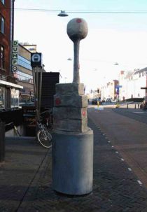 stenen en een typische jaren zeventig lantaarnpaal. Van der Spek