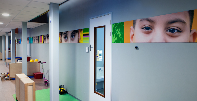 For the Willem Dreesschool in de Capedosestraat in The Hague artist Linda van Boven created cheerful skirting boards throughout the building, displaying photos of