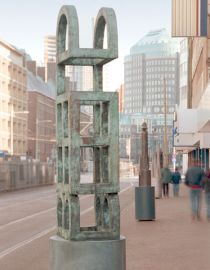 At first sight you see a tower with an openwork construction. It is only then that you see the word. The sculpture consists of sturdy, monumental letters on top of each other. Rien Monshouwer (1947) is interested in the effect words, shapes, colours and meanings have on their environment. Many of his sculptures and installations are a cross between a word image and a character sign. He transforms words into images and thus gives ‘visual language' a tangible form. This word image looks like a piece of architecture, but functions as a monument to language.