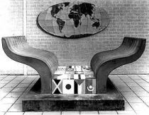 A two-dimensional globe and a big chair in the central courtyard with 24 flags which underline the multi-cultural nature of the school