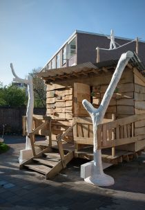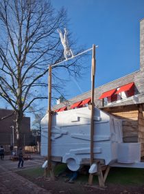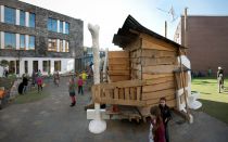 Sander Bokkinga (BOK) created a special cabin for both schoolyards of the Valkenbosschool and Christelijke Montessori School (CMS) under the title 'Stilstand is vooruitgang' (Standstill is Progression). The two inert-mobile sculptures dare the youth to engage in finding their own spiritual freedom as counterbalance to their mandatory school activities. A place to observe, find new perspective and contemplate.