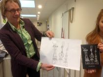 Merijn Bolink, the sketch notepad and the original drawing used for the cover