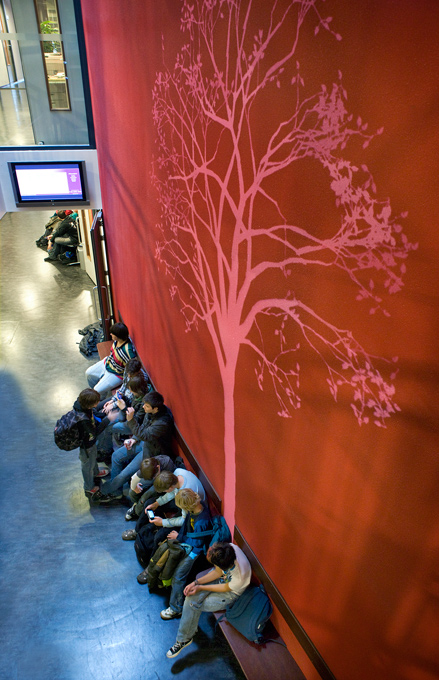 Op de wand van het Westerbeek College groeit een boom; een digitale projectie die aangestuurd wordt door de ‘echte' natuur buiten. De wind die buiten het gebouw waait wordt namelijk gemeten en naar de computer vertaald. De boom is opgebouwd uit honderden deeltjes die samen een natuurlijke kopie van de beweging van een echte boom maken. Rustig in de zomer, intens in de herfst: de boom geeft de ruimte binnen een ongeplande tijdslijn die de natuur buiten voelbaar maakt.