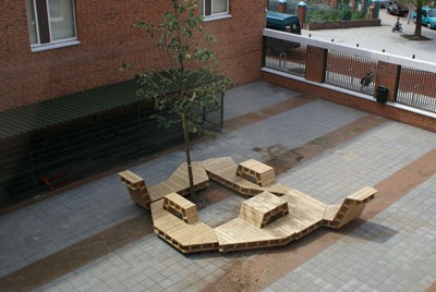 het plein als verblijfsruimte. De objecten zijn te verplaatsen zodat ze
