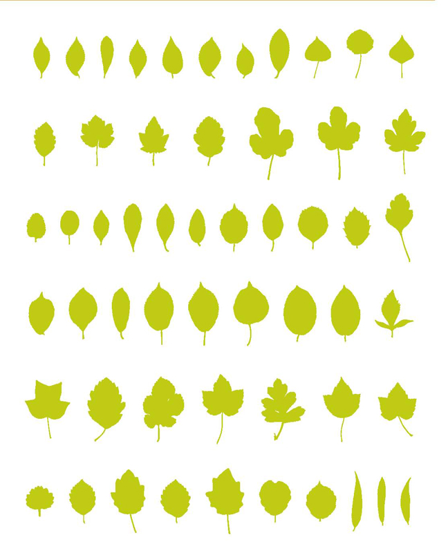 geven in de trottoirs en de plantsoenen de naam en bladvorm weer van de