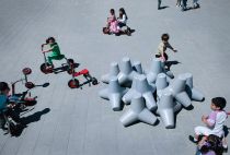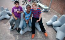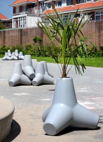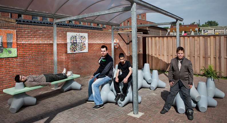 Schools with a small budget can choose to install a multiple especially created for this purpose. In 2011 the last copies of Barbara Visser's TL-time lamp were distributed. Schools that would rather go for an outdoor work of art, can now decide upon the multiple Seascape by designers Krijn Christiaansen and Cathelijne Montens. They created a ‘modular landscape' that can also be transformed into a bench or tree box, according to the wishes of the school.