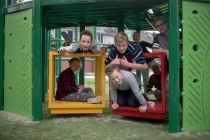 Fascinated by human behaviour, Izabela Boloz uses design to engage people. Geometric Gardens was made to stir the children's imagination, providing diverse opportunities for creative play. Part of the brief of this project was to engage the children - the main users of this public installation - as much as possible in the process from beginning to end. They gave requirements, chose concepts and proposed improvements during the design process. The result is a work that references traditional playgrounds created from steel pipes but at the same time has a contemporary appearance. The emphasis is on the natural environment, created both by the round shape of the structure as well as the shades of green. It resembles an abstract garden.