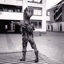 Pandercomplex, Binnendoor In contrast to summer fountains, Rollema designed a bronze werewolf for the interior courtyard of the Pandercomplex. He is active in the winter and if it is cold enough, clouds of steam blow out of his mouth. The wolf rises up on his rear legs from a cattle-grid and represents an archaic fantasy at this historic location in the city.