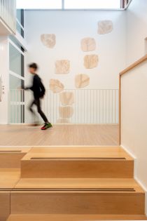 In een tijd dat het hele land stil stond vanwege corona, gingen sommige bouwprojecten desondanks door. De Duinoordschool was al jaren bezig het aanpalende modernistische kerkgebouw bij het eigen pand te trekken omdat ze uit haar voegen groeide. Voor een passende kunstopdracht werd Maarten Heijkamp aangetrokken. Hij observeert met zijn camera obscura gedetailleerd de natuur, en print zijn afbeeldingen niet alleen op fotopapier, maar hamert het in klei. Met een ingenieus systeem reproduceert hij haarscherpe details op een groot oppervlak. Voor de Duinoordschool maakte hij een ‘foto' van een kleine grove den (Citrus Sylvestrus). Van de afbeelding lichte hij elf delen uit en maakte hiervan keramische reliëfs. Deze reliëfs kregen een plaats in het trappenhuis, dat het oude deel van de school via twee loopbruggen verbindt met de - tot aula gerenoveerde - voormalige kerkruimte. De Duinoordschool was heel gelukkig met het werk getiteld Growth dat de cyclus van jong tot oud zichtbaar maakt - van wortel tot blad, zonder alles in een keer prijs te geven en ruimte te laten voor ontdekking.
