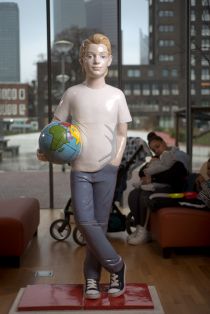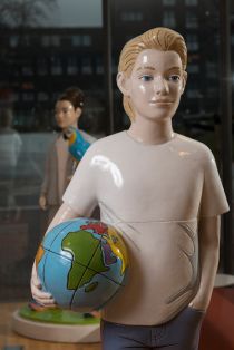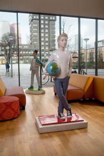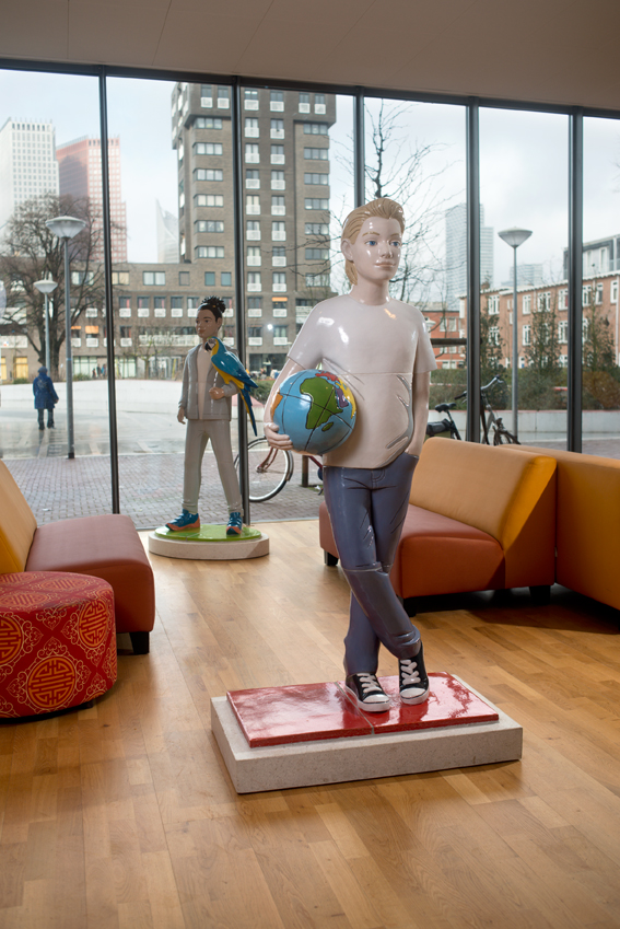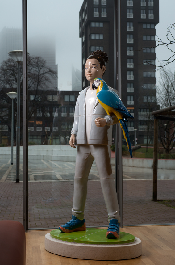 For the entrance hall of the Jan van Nassauschool the artist Berry Holslag made two ceramic sculptures: a boy holding a globe and a girl with a parrot. The parrot is a reference to the relief in the staircase of the old school building (also by Berry Holslag).