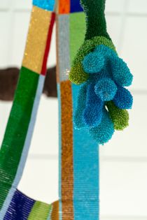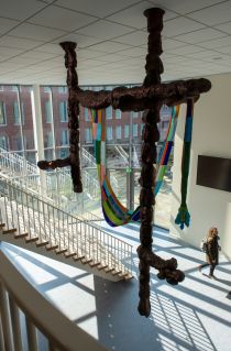 De keuze viel op Esther Jiskoot, die met haar sculpturale objecten van glas en epoxy niet bang is om aparte items te integreren in haar objecten. Ze ontwierp voor de centrale aankomsthal een bot-achtig frame dat als het ware door de lucht zweeft. Het werkt als een soort van wegwijzer en vormt de kapstok voor een immense deken gemaakt van duizenden gekleurde glazen kralen. De structuur van het werk is zowel strak als organisch en de kunstenaar wil daarmee zowel het rationele als het creatieve denkvermogen van de kinderen aanspreken. De quizvraag hoeveel kralen het werk precies bevat is nog steeds niet geraden.