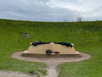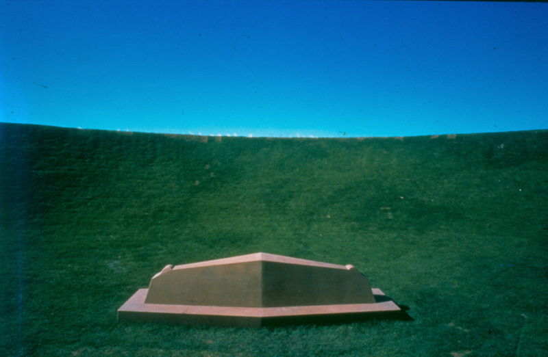 inside of the crater have been sown with grass and a monumental natural