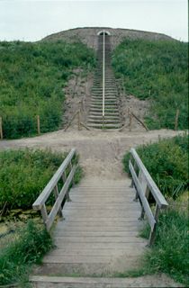 artificial crater you first climb up the dune on wooden stairs and then