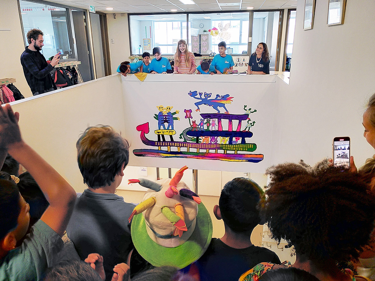 Artist Afra Eisma has emphatically involved the schoolchildren in the new artwork for Dalton Kind Centrum Helen Parkhurst. Together with Studio Dicky, she gave drawing and painting workshops. These workshops resulted in hundreds of drawings which formed the inspiration for a large tapestry made of wool.