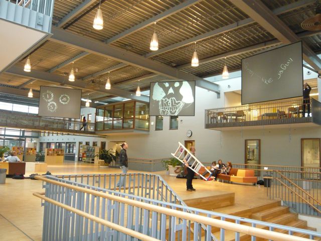 Plaza, de centrale hal van het schoolgebouw, zijn drie verplaatsbare