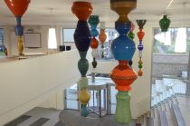 For the Roemer Visscher College in The Hague South West the artist André Pielage created the work ‘Aardewerk' (literal translation: 'pottery' or 'earthenware'). Like stalactites dozens of colourful vases and jars (from a great variety of cultures) hang from the high ceiling of the white entrance hall of the school.