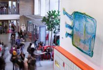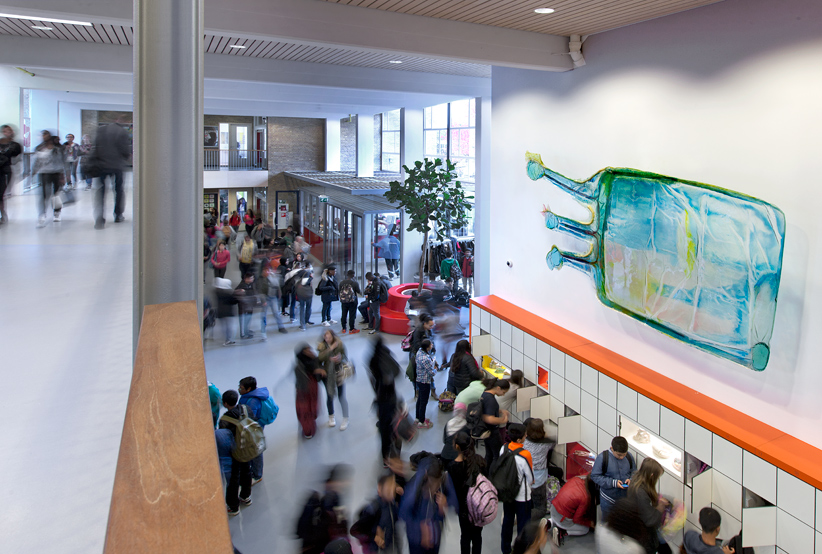 For the Rijswijks Lyceum artist/designer David Lindberg made a colourful sculpture/wall piece for the main hall of the school. The artwork was inaugurated on 16 January 2014 by mayor Bezuijen.