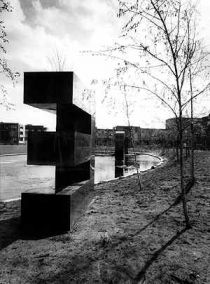 Marc Ruygrok designed a sculpture for a neighborhood park that was planned near a new housing project in Spoorwijk. The brass letters, having in the meantime oxidized to a green/brown are lined up right through the park. Together they can be read as the word
