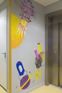 De tekeningen zijn door de hele school te vinden. In het kunstproject