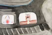 bevolken de muurtekeningen. Ze vormen bijvoorbeeld de passagiers van